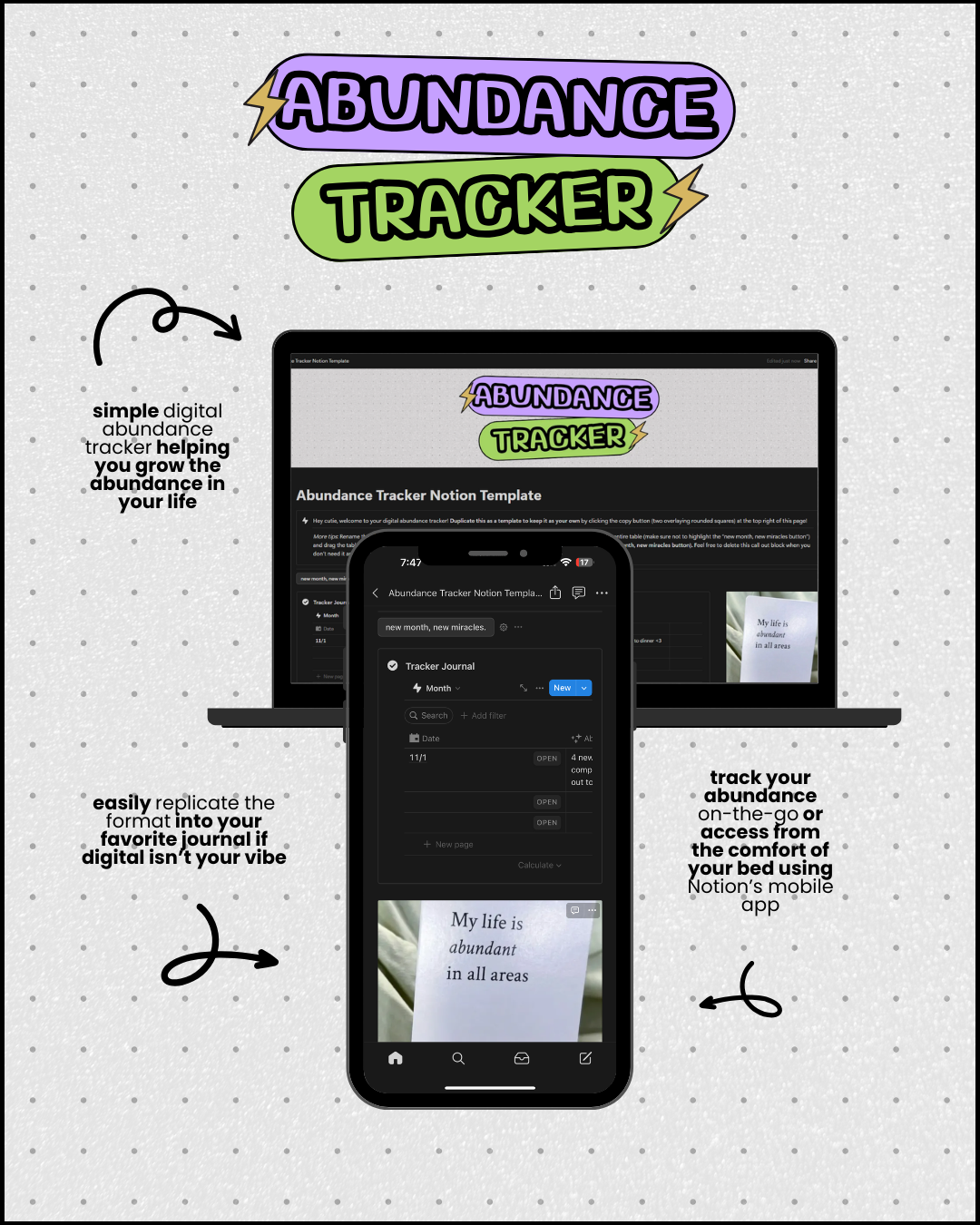 add this FREE on-the-go digital tracker to your daily magnetic gurl routine to align yourself with the frequency of abundance, prime your RAS (the filter of your brain) for new opportunities and attraction, and shift from scarcity to "so much is already happening for me".