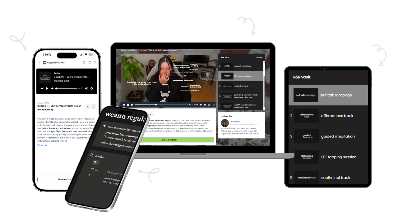 a one-time investment in your body’s ability to finally receive and hold more. all the courses, affirmations, and techniques you’ve tried only address 5% of the work. R&R dives straight into the 95% your subconscious has been running on autopilot.